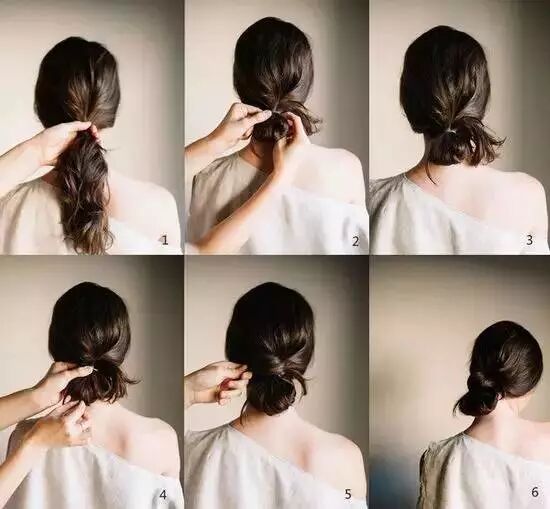 将头发拢起来,用橡皮筋在脖子后面绑一个球。如果你喜欢上面Jessica Alba那样的话,把发尾留在外面就好啦。如果你想扎整齐一点,就将发尾绕着橡皮筋卷一圈,固定,就完成啦!
