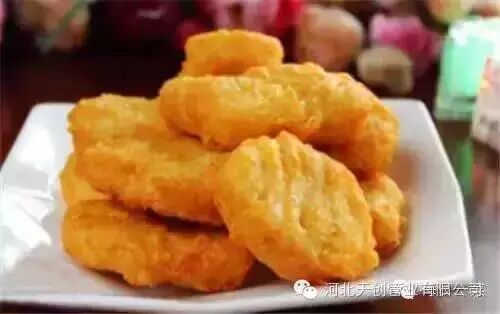 材料:鸡脯肉一块、盐半匙、料酒2ml、胡椒粉2两、香油2ml、蛋清少量、炸浆、甜味沙拉酱适量。
