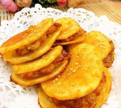 4、平底锅中放入少许油加热,土豆以打圈的方式挤入锅中煎至两面金黄即可。