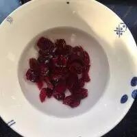 3. 将蔓越莓干用水浸泡十分钟左右。