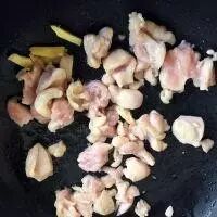 8. 最后放菠萝块,稍稍翻炒后加入少许盐调味装盘。