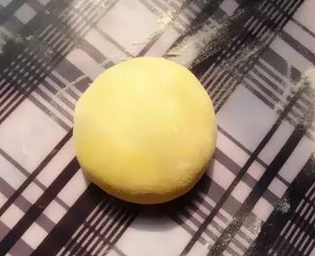 取已经和好的黄色面团 鹅蛋大小 先做一个圆球