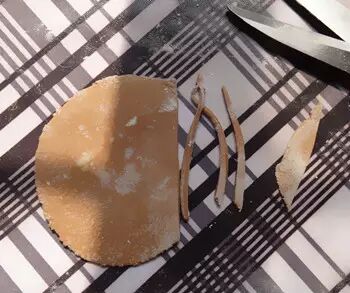 15.然后剪俩咖啡色小椭圆 和白色的小圆