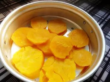 1.红薯洗净,去皮,切大片儿 (红薯挑颜色深的)
