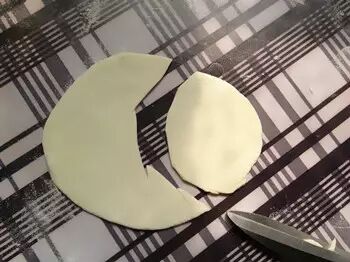 12.将耳朵刷了水的部分 压于已经做好的圆形面团下