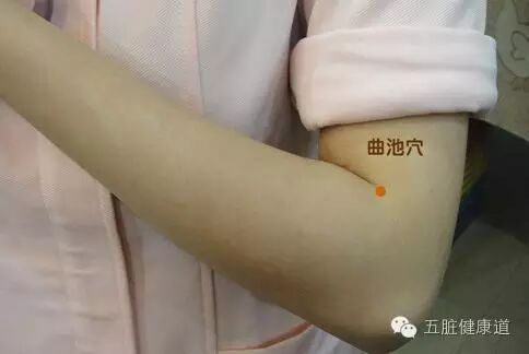 位置:手阳明大肠经合穴,完全屈肘时,位于肘横纹外侧端处。