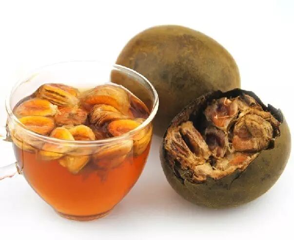 罗汉果味甘性凉,有润肺止咳、生津止渴的功效、适用于肺热或肺燥咳嗽、百日咳及暑热伤津口渴等,此外还有润肠通便的功效。罗汉果泡水喝,到了晚上把它的肉吃掉,罗汉果的肉有点甜也有点酸,泡了一天以后再吃就很好吃了,不是特甜。