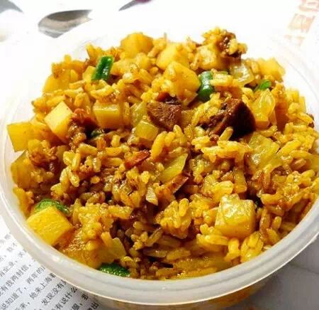 9)焖熟的咖喱牛肉饭盛入碗中,趁热食用。