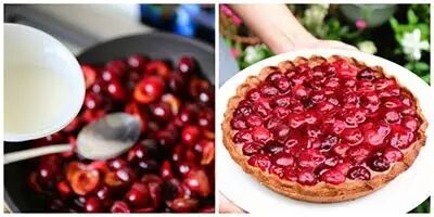 14、将烹制好的樱桃酱填入冷却后的巧克力派中就完成了。