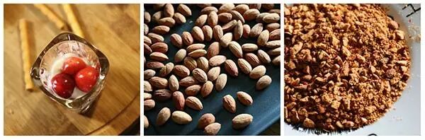 樱桃适量、饼干棒2根、希腊酸奶1盒、巴旦木若干、柠檬汁少许