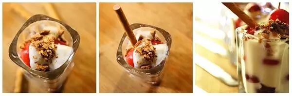 4、上面的步骤再重复两遍,也就是三层樱桃,三层希腊酸奶。