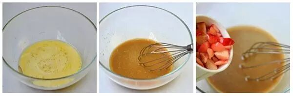 1、将蛋液、玉米油、牛奶倒入一个玻璃大碗中