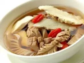 ①猪腰。鱼胶和杞子洗净。