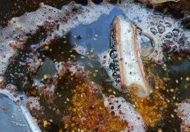 4.锅中倒入啤酒,倒入的啤酒量差不多刚好没过龙虾。