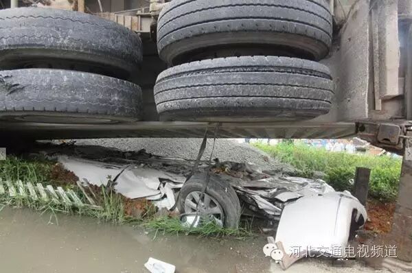 这辆装有砂石大货车已将小车完全压住,轿车整个车身被完全压扁。大家如果出行遇到这种装载砂石的大货车真的要小心了,意外真的...6个人的性命就这样被结束了,心塞!