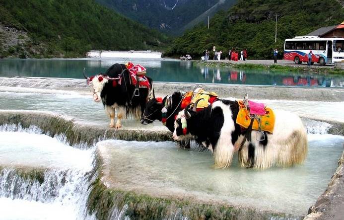 在酒店用过早餐后从九寨沟口出发, 途中欣赏美丽的天然草甸牧场【甘海子】。【德勒达格景区】位于阿坝州松潘县川主寺镇山巴乡,系九寨沟黄龙若尔盖风景区的中心线上,依岷江水源头,是阿坝州新兴的旅游增长点。德勒达格景区内传承百年手工经典,精湛马术表演,精彩的藏族风情体验,着力打造极具特色的藏式风情景观。了解茶马历史、感受藏文化、体验激情赛马。(时间约2.5小时)(赠送价值68元的自助餐)用餐后,前往黄龙景区。【黄龙风景区】景区海拔3100米至3500米,在终年积雪的岷山主峰雪宝鼎下,以彩池、雪山、峡谷、森林“四绝”著称于世。主要游览景点包括:迎宾彩池、飞瀑流辉、仙人洗身洞、金沙铺地、五彩池、黄龙古寺等等。如不想爬山,景区内有索道可乘坐(上80元,下40元需自费)。黄龙景区游览结束后,回到川主寺入住酒店(川主寺目前并无假日酒店同级别国际五星级酒店,我社安排入住当地的五星标准酒店:松潘阿吾仓大酒店、松潘天马大酒店或同级)