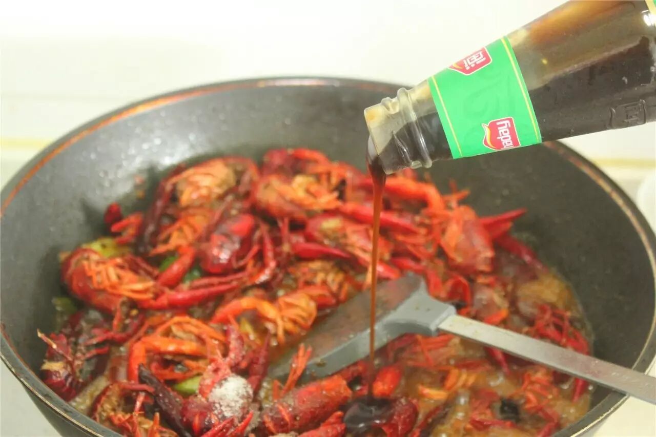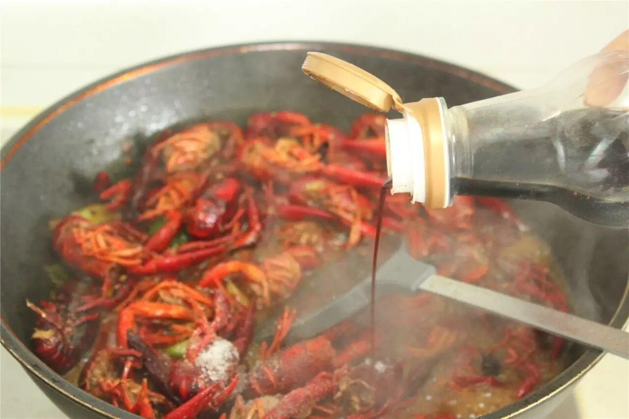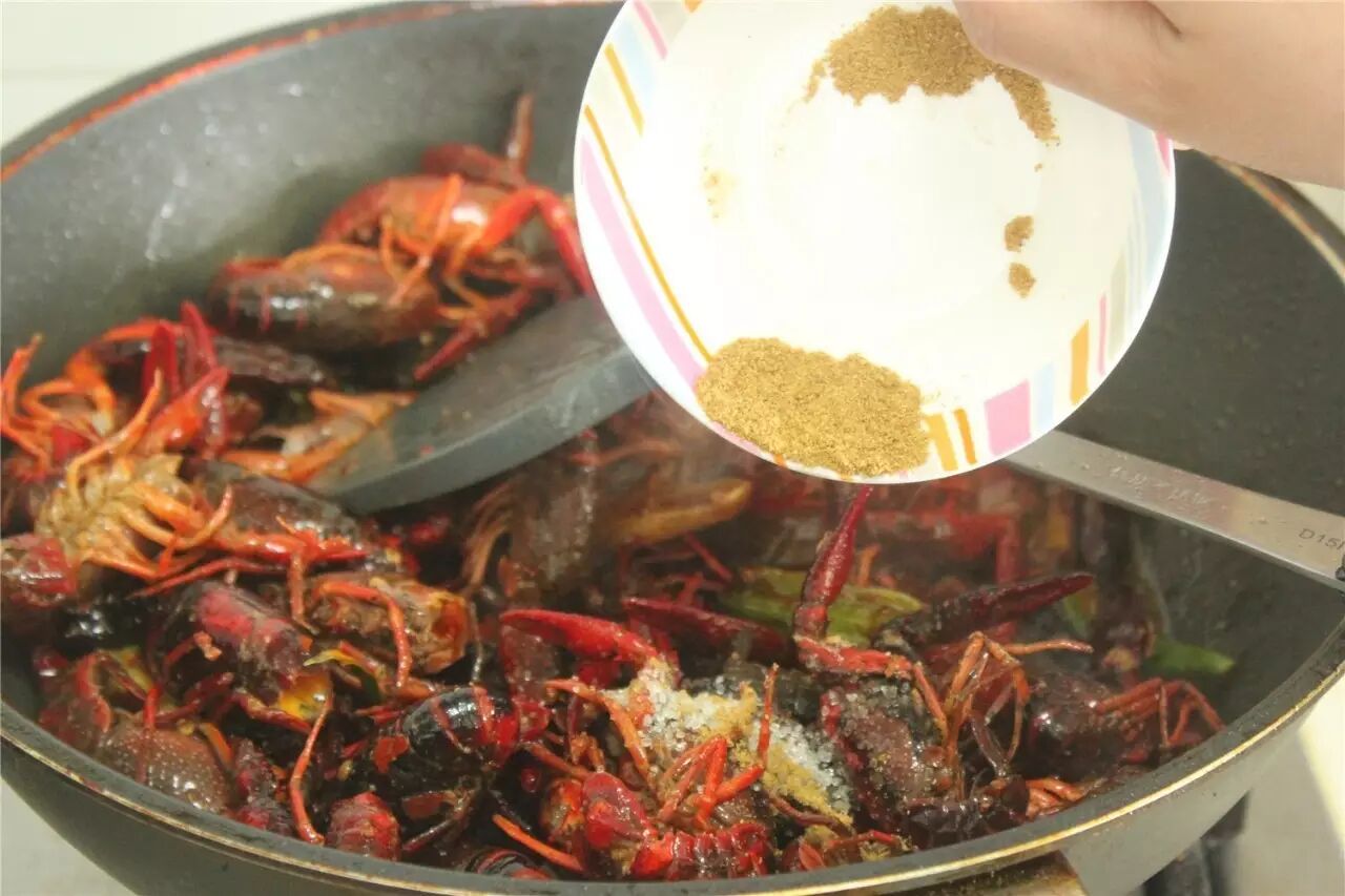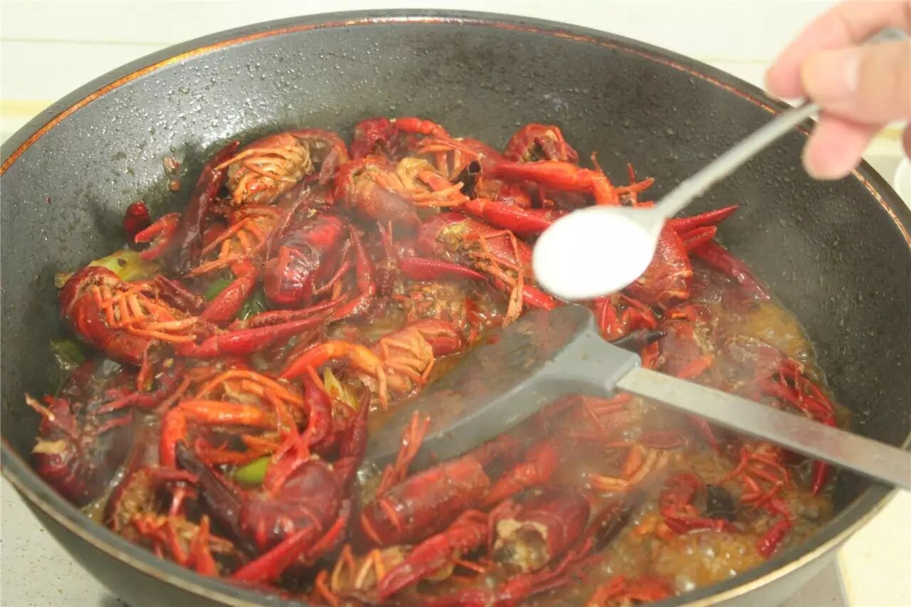放处理好的小龙虾入锅翻炒