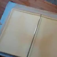 6.烤好的蛋糕片平均切割成两等分备用。
