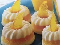6. 取出柠檬奶冻,将香橙果冻糊倒入模具,冷冻20分钟
