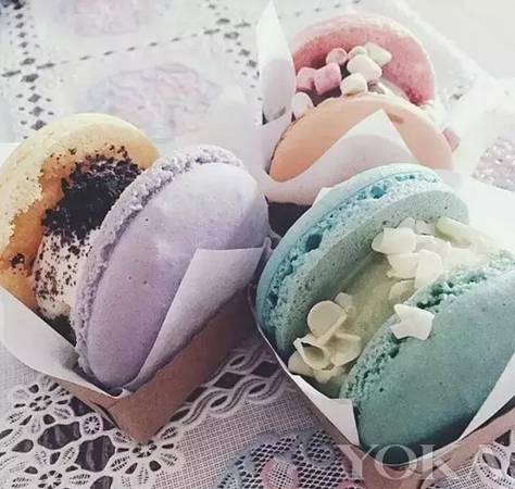 但马卡龙的口感实在不适合吃太多,所以一枚有才的吃货想到了在马卡龙中间加上冰淇淋的吃法,不仅解腻,更重要的是,让本来就美美哒的糖果色马卡龙变得更加讨人喜欢了。