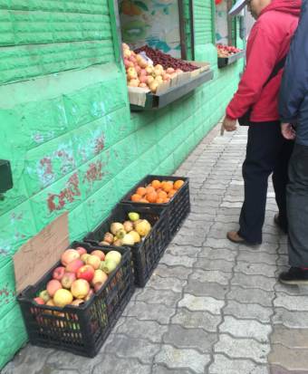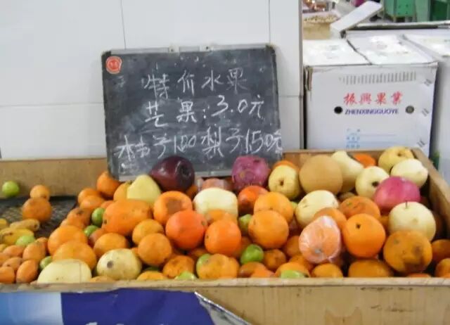 记者又来到一个街边水果超市看到,门口摆着三篮水果,分别是长黑斑的苹果,发黑的梨和干瘪的橙子,三种水果上面的牌子写着“处理 0.98元/斤”,路过的行人偶尔会“心动”挑一挑。