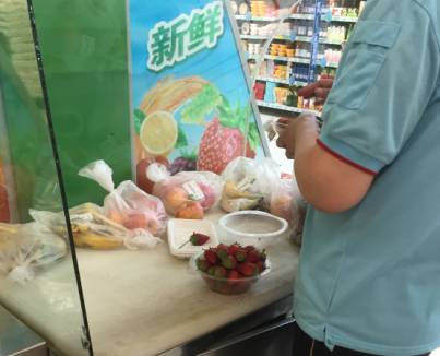 前几天,某媒体记者来到一家大型超市,临近傍晚打烊,水果区的工作人员大声叫卖特价水果,水果台上放着长黑斑的芒果。另一个操作台上,工作人员正往盒子里分拣草莓,旁边放着一袋袋已经分装好的苹果和香蕉,有的能看出伤痕,有的上面有黑斑。