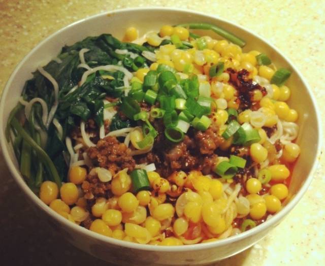 它家海椒特别香而且不是很辣,适合外地的吃货来种草~杂酱都是特别大块的那种,豌豆很耙,面也劲道,再加碗自制的绿豆汤,巴适!