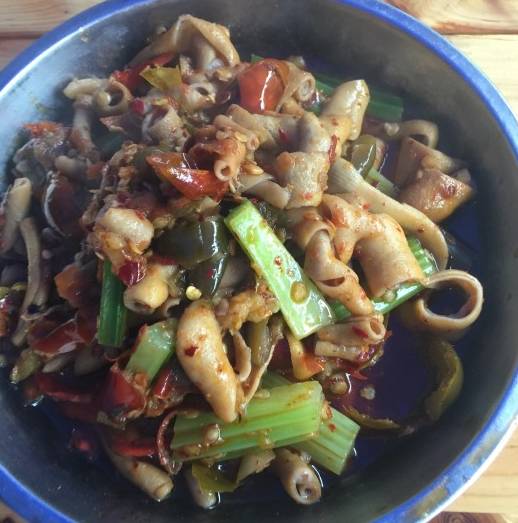 到了磁器口,满大街的老字号第一家,让你眼花缭乱,难以抉择。鸡心、鸡胗、鸡肠和鸡肝,完美结合着红艳的泡椒和泡萝卜丝儿,在热锅沸油里咕噜飘香。整个味觉系统一定让鸡杂的热辣刺激到崩溃,让你把持不住对它的渴望。来嘛,再添碗饭。