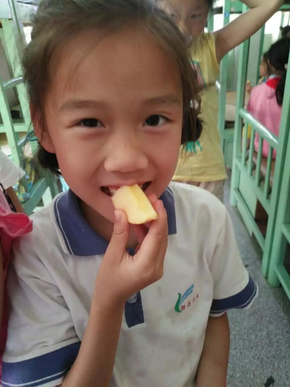 每天中午午休之后,银海寄宿部的孩子们就盼来了欢呼雀跃的时刻,“水果俱乐部”就要开餐了。孩子们一个个垂涎欲滴地排排坐,快乐地等着分果果。