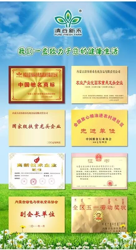 内蒙古清谷新禾有机食品集团有限责任公司为集团化民营企业,坐落在美丽富饶的科尔沁大草原——通辽市。集团立足于以有机绿色食品为基础,以荞麦全产业链建设为发展方向,努力建设高科技的专业荞麦低糖食品生产企业为目标。