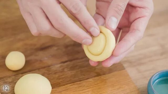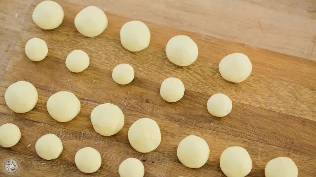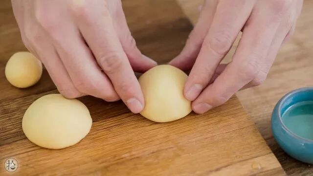 这么做的目的是让大圆子在醒发过程中保持碗状。
