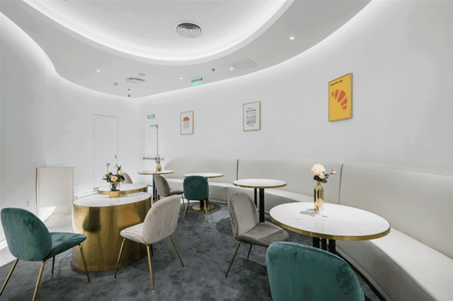 店内流线的装饰,时尚简约;松软的沙发,让人恨不得陷进去;创意的挂画、带着明媚地中海风的爵士音乐都让你心身放松。
