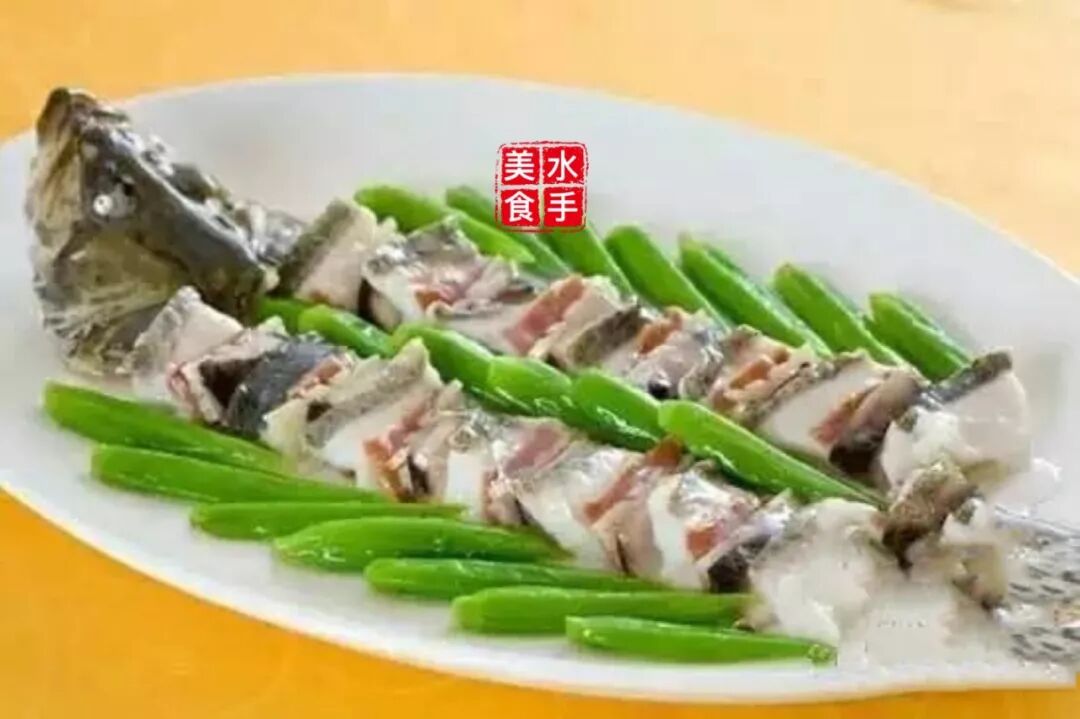 桂鱼750克,火腿40克(4cmⅹ2cm/件),冬菇75克,郊菜200克,甘笋花、生葱、姜件各少许。
