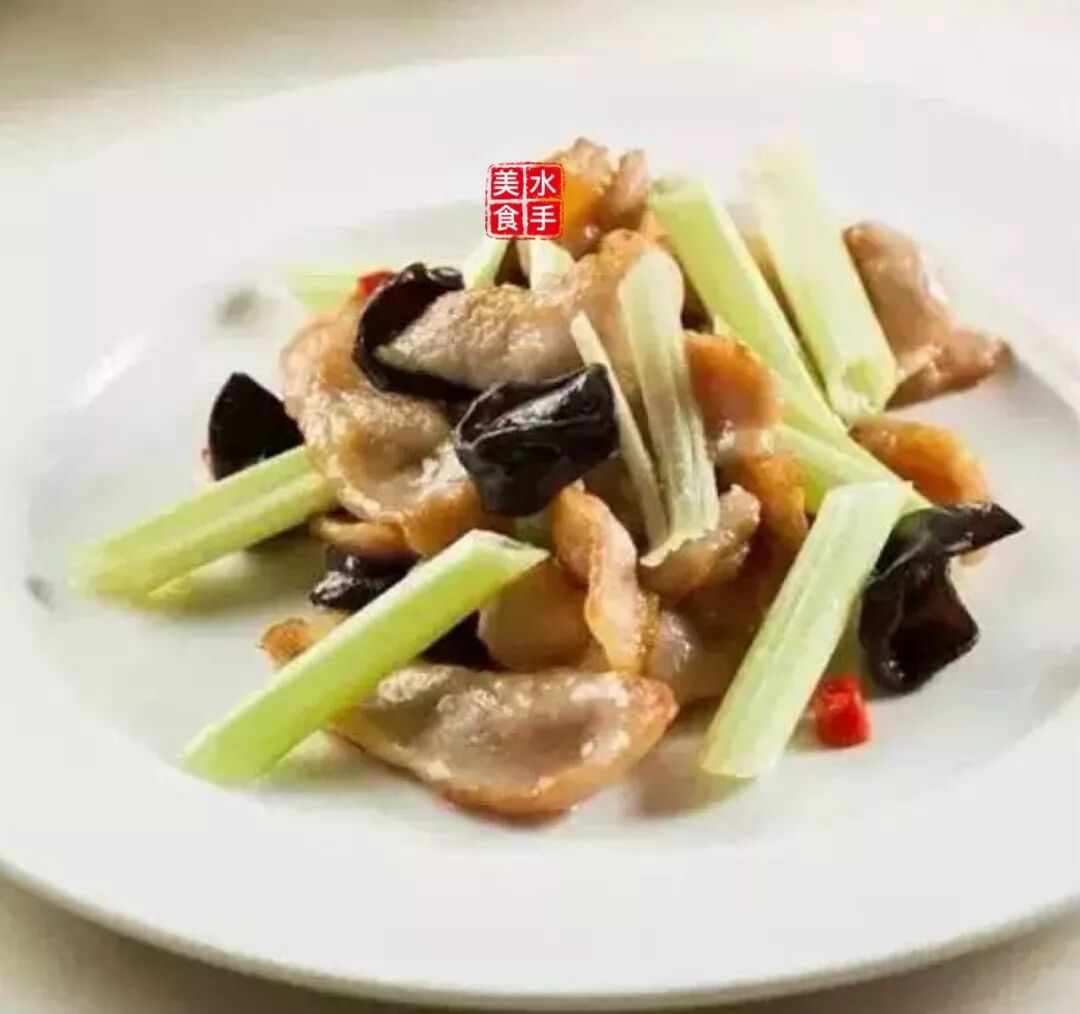 原料:猪颈肉,马家沟芹菜,木耳,泰椒。