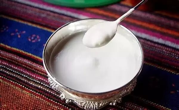 西藏酸奶是用新鲜牦牛奶,经过蒸煮、冷却、发酵而成的,与内地的酸牛奶口感很不同,味酸、厚重、黏稠,看起来有点像豆腐花。但是加上蜂蜜或者白糖,舌尖上的感觉就会变得非常有趣,让人念念不忘。