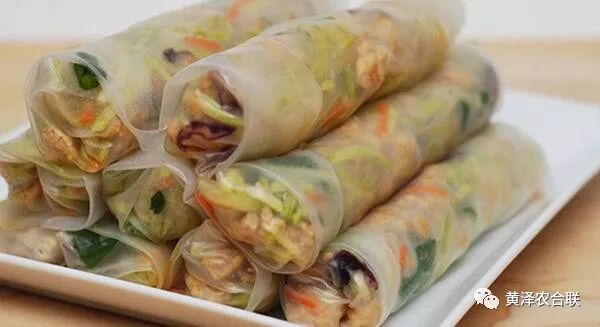 二、春饼:黄泽春饼皮薄如蝉翼,铮亮透明胜似镜。此小吃相传起源于东晋时代就有了春饼,当时称之为“春盘”。到了唐宋时,这种风气更为盛行。杜甫就曾有“春日春盘细生菜”的诗句。古时,春盘又叫五辛盘。明代李时珍说:“以葱、蒜、韭、蓼、蒿、芥辛嫩之菜杂和食之,谓之五辛盘。”清朝满汉全席128道菜,春饼是九道主要点心之一,后来春饼就成了江南特有的小吃,但是独有嵊州黄泽的春饼味道特好,不同寻常。黄泽的春饼香而脆,每筒春饼一般要叠放3至5张,里面常常包有臭豆腐或油炖,再涂上一层酱或蒜末或辣椒末都可以。吃起来外脆里香。深受顾客青睐。