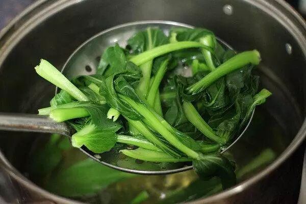 10.令取一个锅,烧开水,放入青菜焯熟捞出。