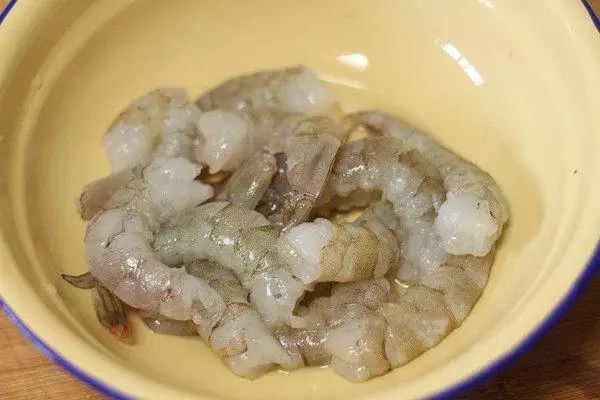 1.鲜虾去头、去壳、去虾线,洗净,只留虾仁。