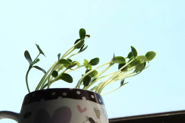 4、差不多三周后,就长出了嫩绿色的小芽。为了确保芽苗的存活率,可以剪掉那些发育不良的芽苗。
