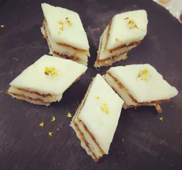 ❥ 轮流一层一层将两种泥铺好,放入冰箱冷藏三个小时,取出切成自己想要的形状就好了!