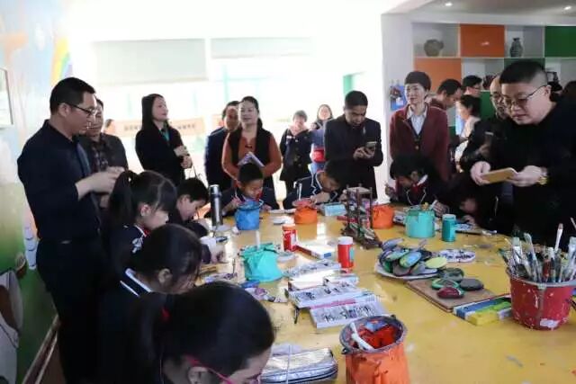 【麻辣校园】3月23日讯,3月21日上午,丰泽区教育局相关领导、驻校作家蔡芳本、泉州师范继教院相关领导和老师、二十几位校长培训学员一行人来群石实小调研,先后参观了学校石头彩绘展、百花园、运动场、中庭场等场馆建设并参与了班队主题课、读书交流论坛。