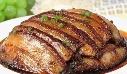3.煮熟的肉切片,在调好的汁里片过一下(没用完的汁可以倒进肉碗里),然后在放在盘子里码好