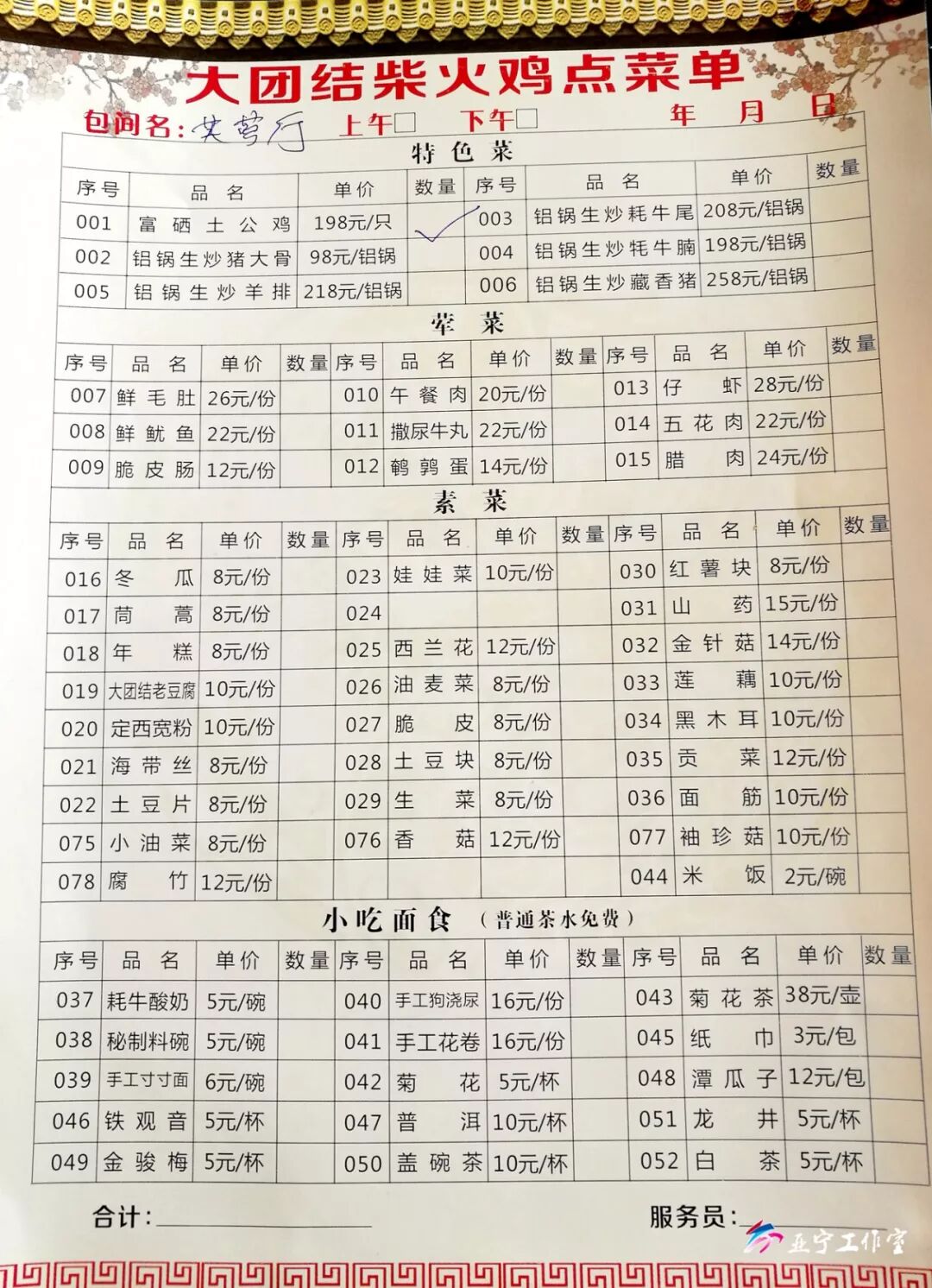 特色菜一锅可以供5--6人用餐,荤菜与素菜是用来品尝柴火鸡后涮火锅的,如果你还有食欲,可以在柴火鸡的汁汤里涮涮火锅。