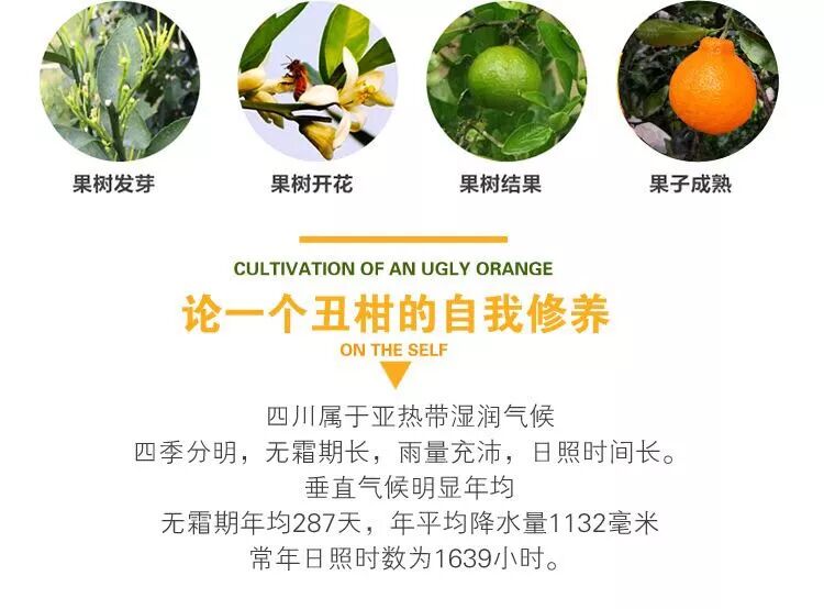 【唐氏丑橘】果皮略粗,易剥皮,香味浓,无浮皮。果汁糖度14-16度,含酸0.1克左右,成熟11个月。出生地:川西平原与川中太低交接合部,本次团购请咨询扫码下方二维码了解参加。