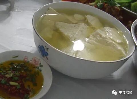 豆花饭顾名思义就是用豆花当做下饭菜的一种快餐食品,由一碗豆花,一碗大米饭,一小碟蘸水而组成。《舌尖上的中国2》首期《脚步》中提到了乐山豆花的独特魅力。