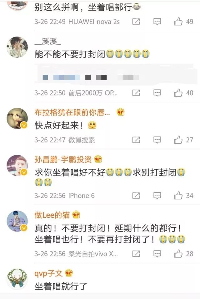 据知情人士透露,李宇春将会打封闭上场,不会影响31号的演唱会。而当粉丝知道春春会打封闭上场的时候,纷纷表示希望她能坐着唱。