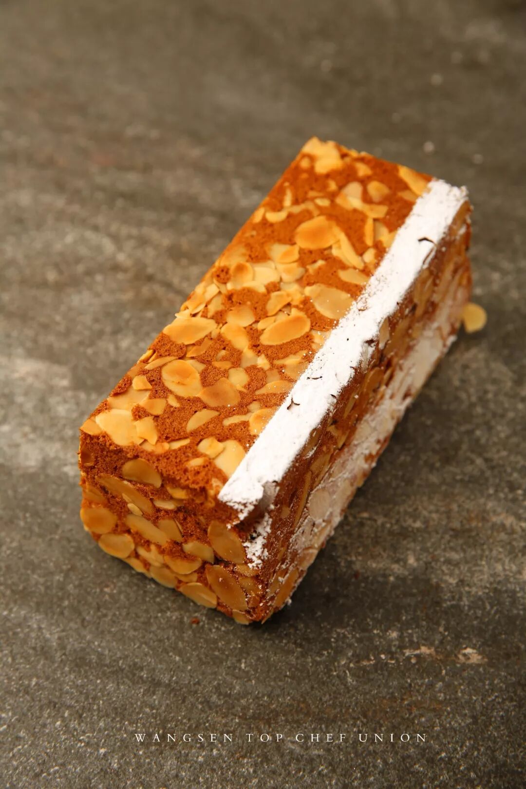今天分享来自朝田晋平原创的一款西班牙蛋糕,这是一款芳香浓郁、口感湿润,且充满制作十分简单的蛋糕。外层包裹了香脆的杏仁片,用刀切开,内部组织扎实细腻,满满的巧克力、香草、黄油气息,让人食欲满满。