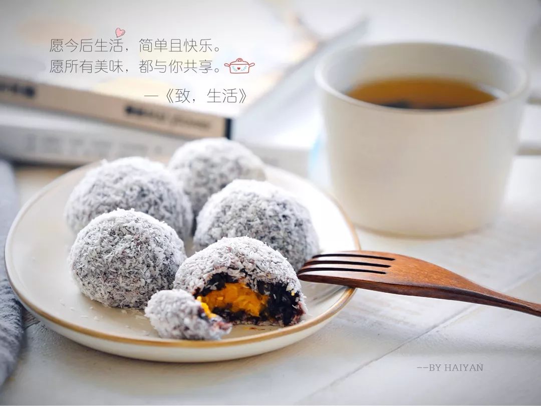 1、准备材料(豆沙馅和黄豆面都是自制的)
