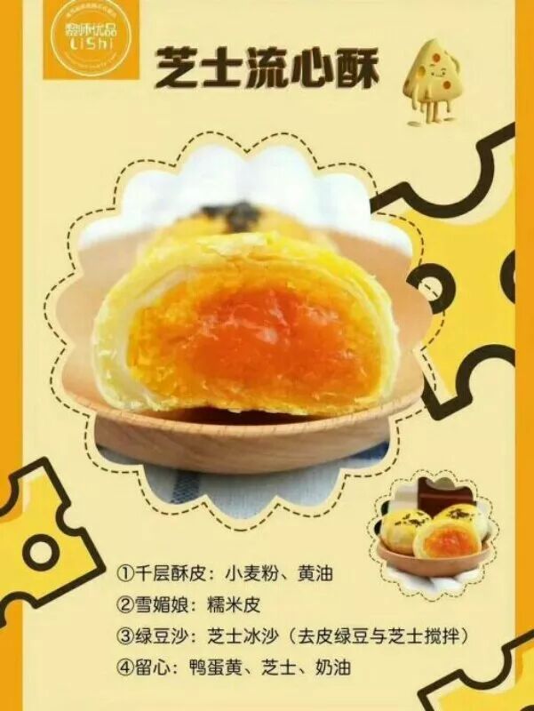 描述:千层酥皮包裹着雪媚娘和绿豆沙,层层包裹下藏着芝士留心哦~