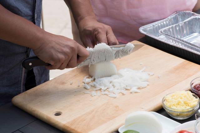把蒜末、洋葱切碎放入锡箔盒备用。